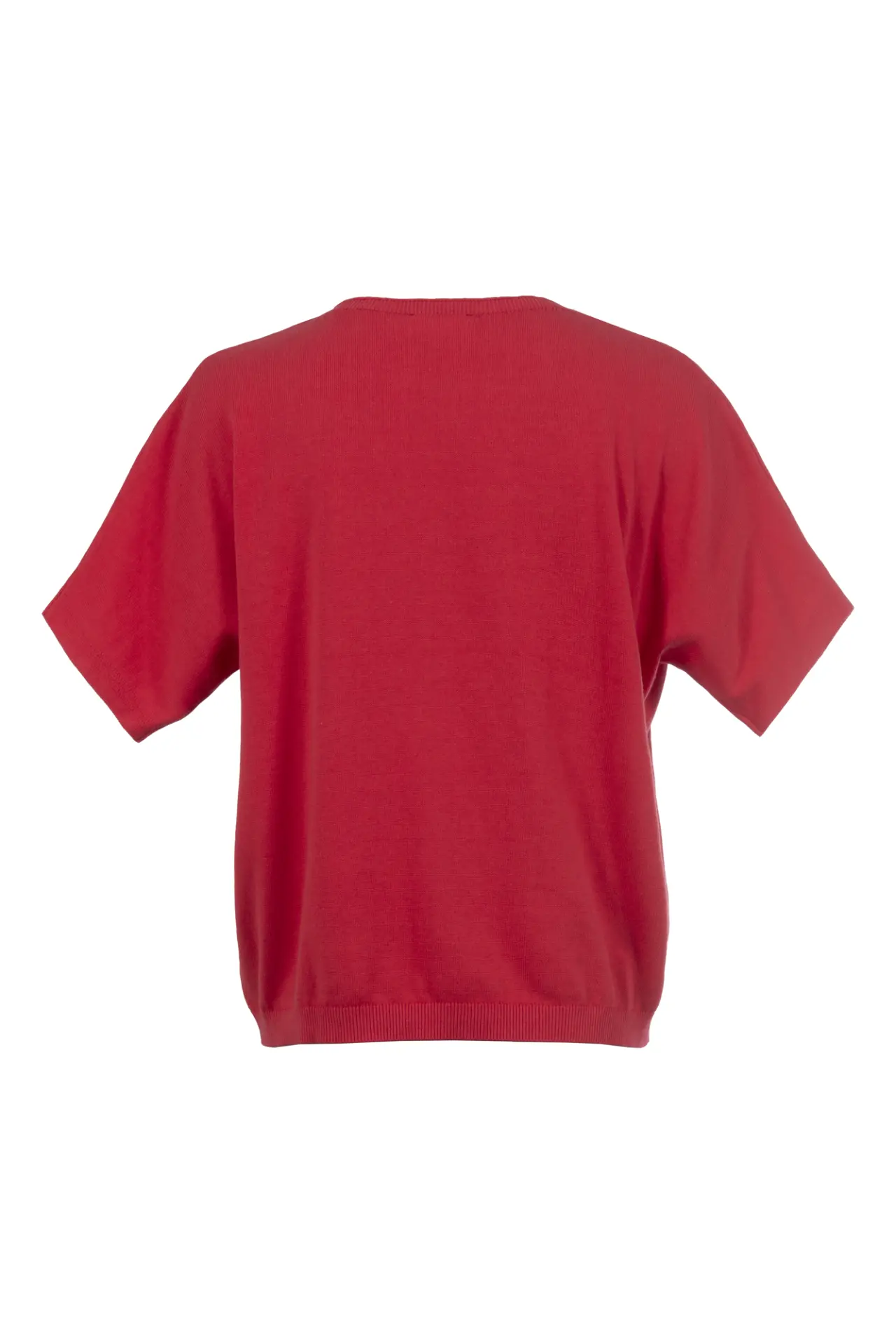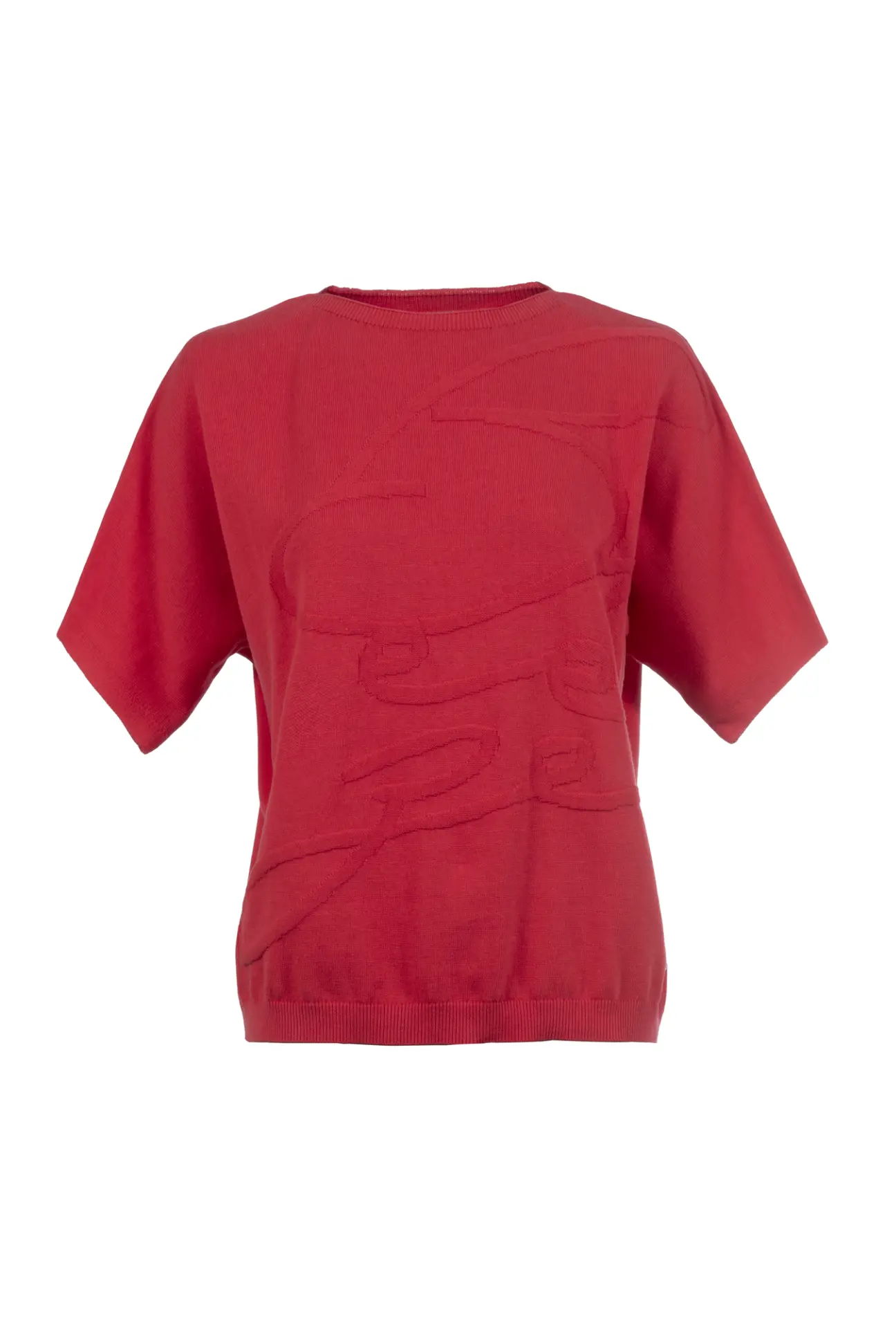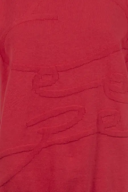 Der leichte Strickpullover mit kurzen Ärmeln überzeugt durch eine lässige Passform dank überschnittener Schultern. Das dezente, tonale Strickmuster verleiht dem Modell eine moderne Note.