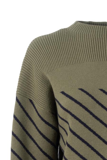 Strickkleid in kontrastiger Streifenoptik mit Stehkragen.