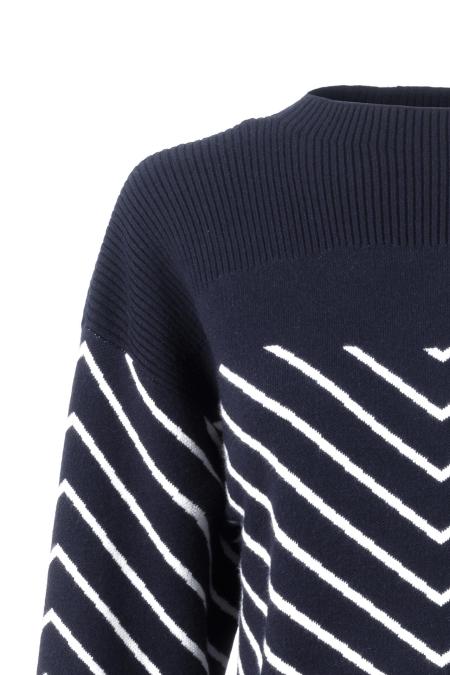 Strickkleid in kontrastiger Streifenoptik mit Stehkragen.