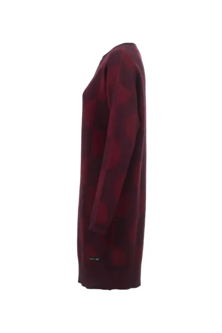 Das locker geschnittene Strickkleid vereint Komfort mit einem modischen Muster in tonaler Farbgestaltung. Der Bordeaux-Ton ist perfekt für kühle Herbsttage. Rippbündchen an Ärmel und Saum runden den Look ab.