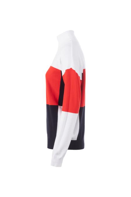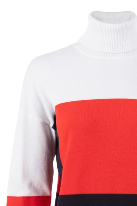 Leichter Strickpullover mit Rollkragen. Er zeichnet sich durch die moderne Colour-Blocking-Optik aus. Durch den klassischen Schnitt und die Farbgestaltung ist der Pullover zu verschiedensten Anlässen tragbar und vielseitig kombinierbar.
