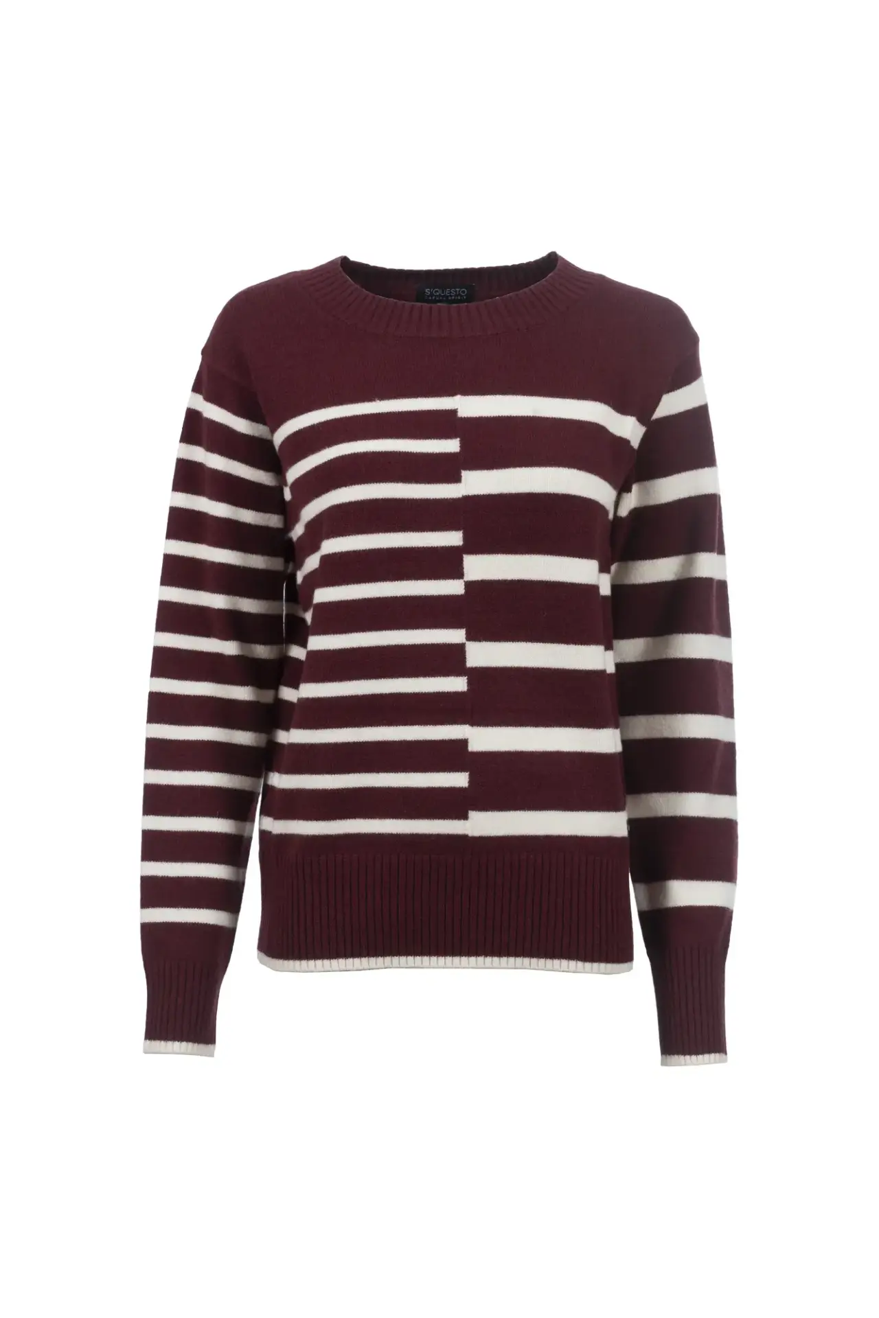 Modischer Strickpullover mit asymmetrischem Streifendesign. Das leichte Strickmaterial sorgt für einen besonders hohen Tragekomfort, während das Design vielfältige Kombininerbarkeit garantiert z.B. mit einer Jeans oder einem S’questo Blazer.
