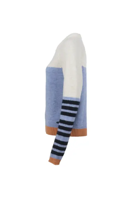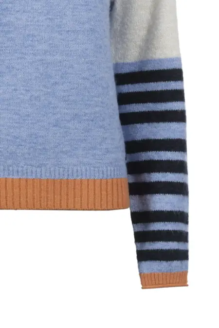 Verspielter Strickpullover mit außergewöhnlichem Streifendesign in harmonischer Farbkombi.