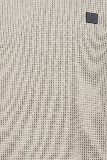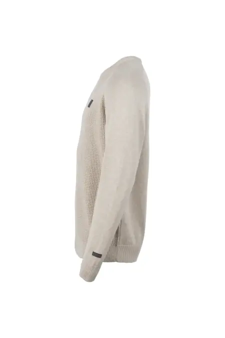 Einfarbiger Strickpullover mit spannendem Strukturmix für einen modischen Look. Mit hochwertigem Questo-Patch auf der Brust.