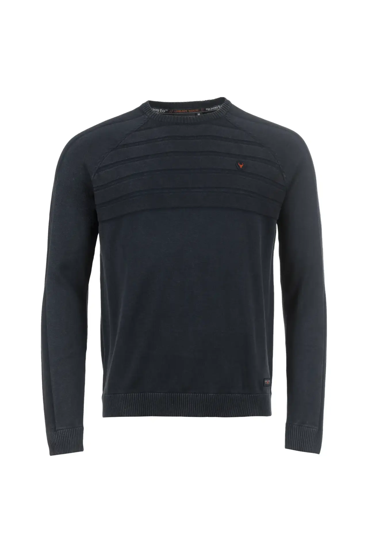 Der Strickpullover überzeugt durch die markante Struktur im oberen Bereich. Der Raglanärmel und die Waschung geben einen lässigen Charakter. Abgerundet durch hochwertige Questo-Patches.