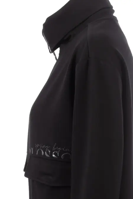 Hochwertige Sweatjacke in modischem Schnitt mit aufgesetzten Taschen und markantem Kragen. Der Look wird durch einen tonal gehaltenen Lettering-Print an der Tasche vervollständigt.