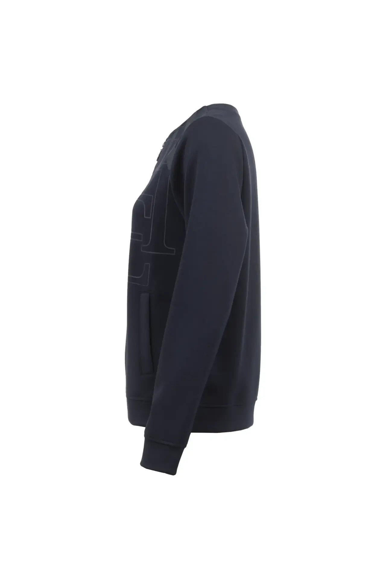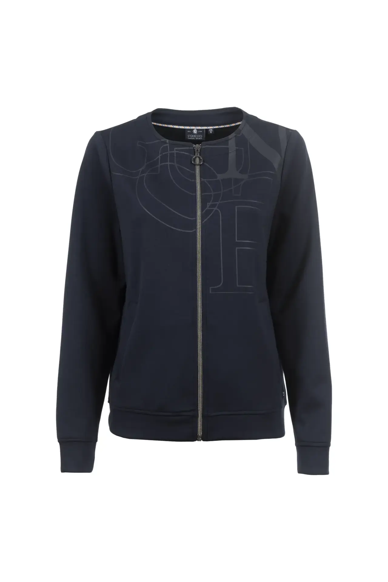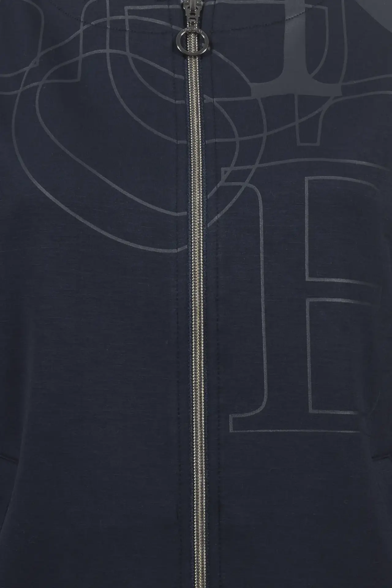 Sportive Sweatjacke mit Rundhalsausschnitt und durchgehendem Reißverschluss für eine klare Silhouette. Der große, tonale Lettering-Print auf der Front setzt ein dezentes Statement. Das Material liegt besonders sanft auf der Haut.