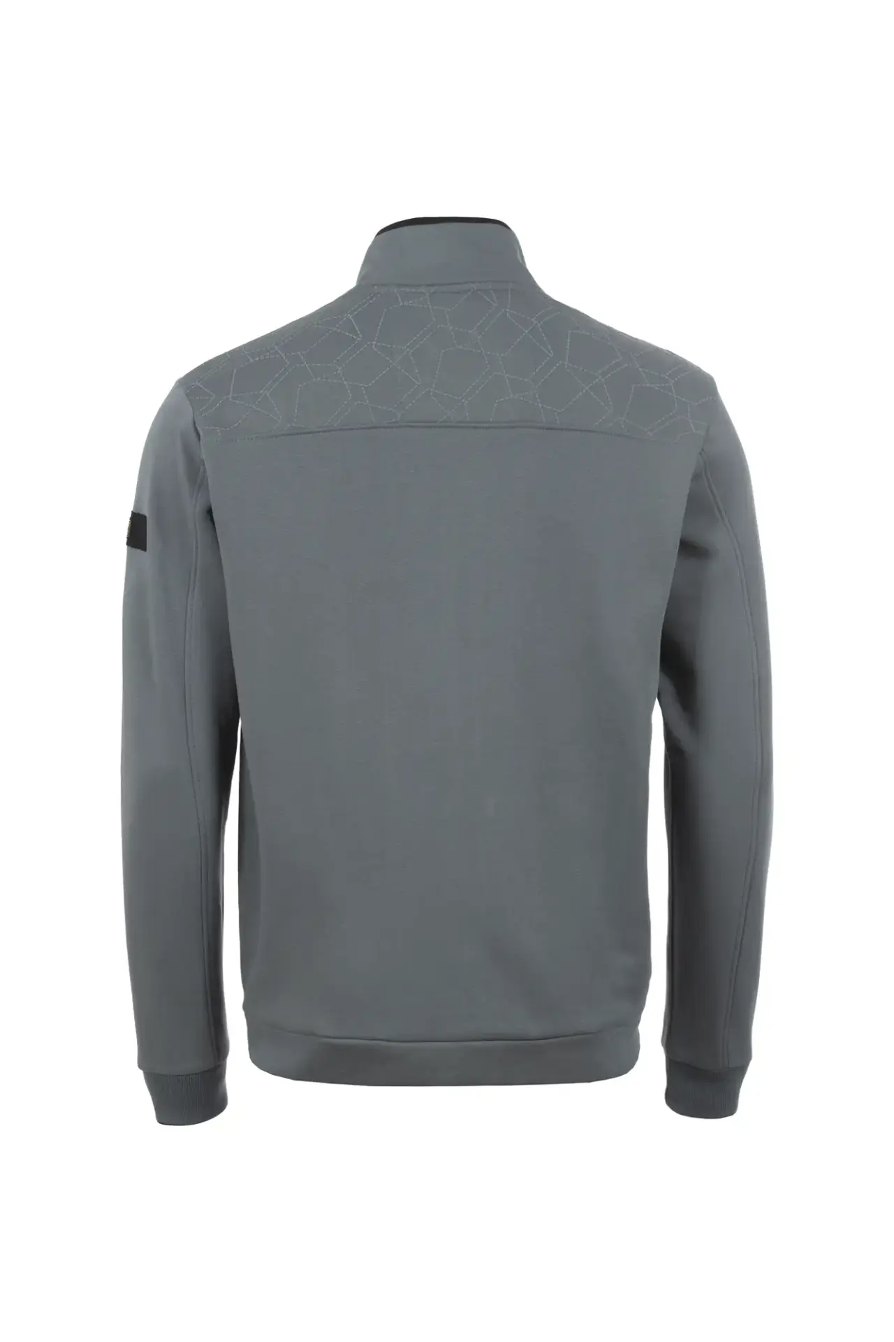 Sportive Sweatjacke mit Stehkragen und grafischem Ton-in-Ton-MusterMuster im oberen Bereich. Abgerundet wird der Look durch dezente Kontraste am Reißverschluss oder auf dem hochwertigen Patch am Ärmel. Ein kleiner Lettering-Print auf der Brust rundet das Design stimmig ab.
