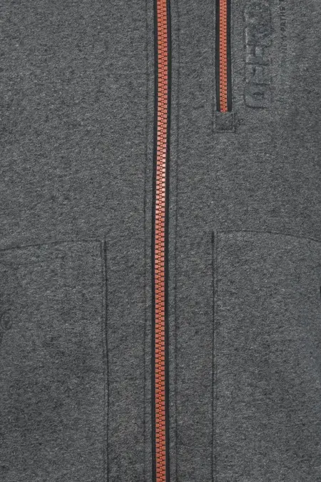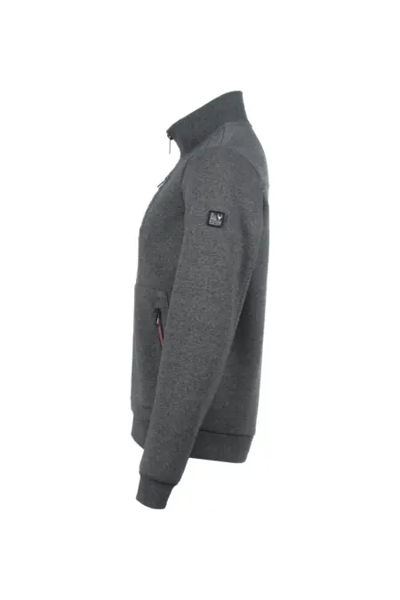 Weiche Sweatjacke in Melange-Optik und mit Stehkragen. Mit hochwertigem Embossed-Print auf der Brust und dezenten, tonalen Prints. Ein besonderes Highlight sind die Reißverschlüsse in Kontrastfarbe.