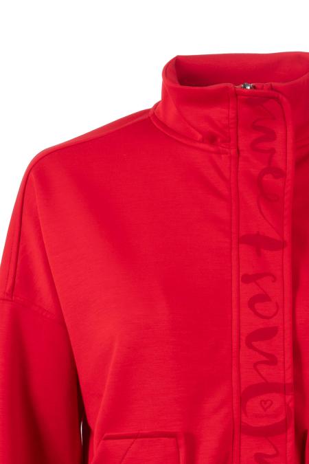 Moderne und sportive Sweatjacke mit verdecktem Reißverschluss und Stehkragen. Die beiden Taschen unterstützen nicht nur die lässige Optik, sie sind auch praktisch. Aufgepeppt wird die unifarbene Jacke durch den tonalen Lettering-Print auf dem Frontpanel.
