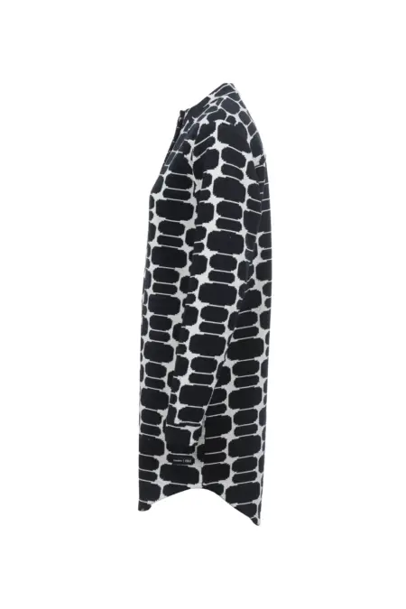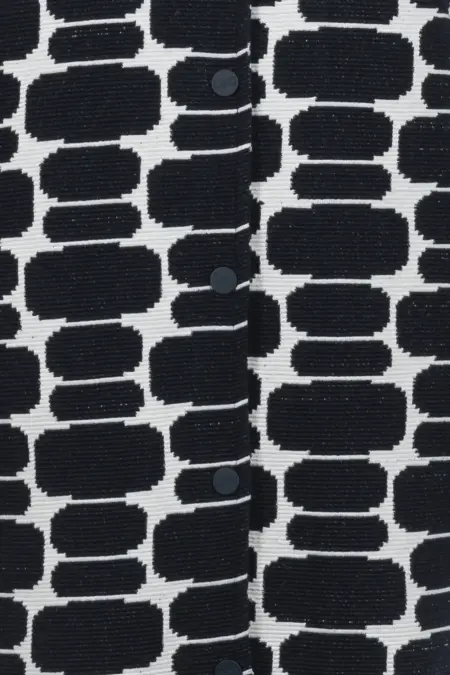 Einzigartige Jacquard-Jacke mit grafischem Muster. Durch den langen Schnitt kann die Jacke entweder über einem Shirt mit Hose, oder auch geschlossen als Kleid getragen werden! Mit der Jacke aus hochwertigen Ottoman-Material bist du zu jedem Anlass passend gekleidet.