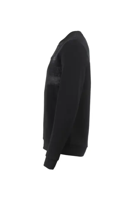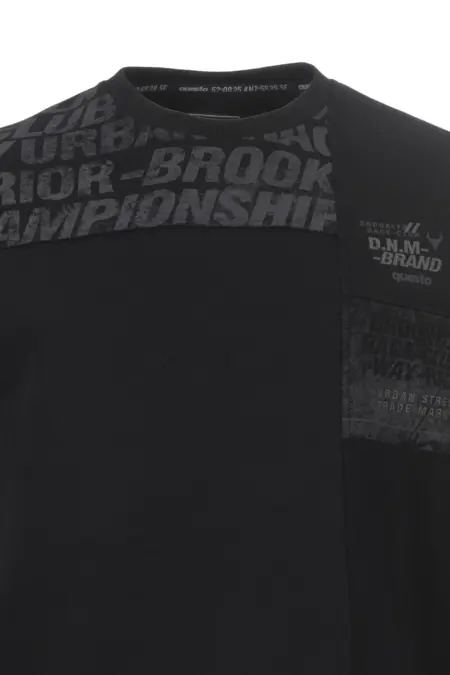 Rundhals Sweatshirt mit modernem geteilten Print in tonalen Farben auf der Vorderseite. Ein weiterer schwarzer Questo-Print ziert die Brustpartie.