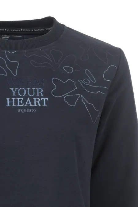 Feminines Sweatshirt mit hochwertiger Stickerei und floralem Print in harmonischer Farbgestaltung. Abgerundet wird der verspielte Winterlook durch die Knopfdetails an der Seite.