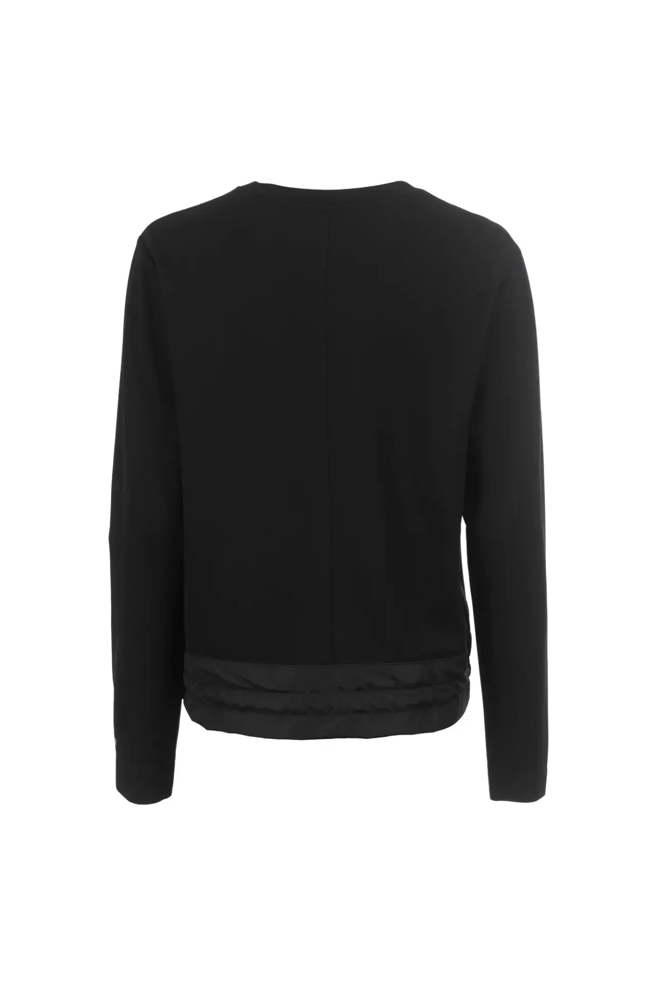 Dieses sportive Punto-di-Roma Sweatshirt zeichnet sich durch den gewebten Bund mit Gummi aus. Eine mittlere Naht und ein kleiner Lettering Print am Rundhalsausschnitt fügen eine feminine Note hinzu. Perfekt kombiniert mit der passenden S’questo Hose.