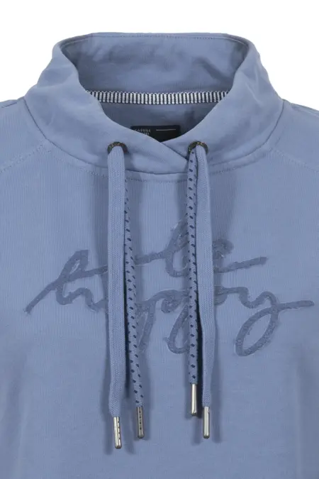 Sportives Sweatshirt mit überschnittener Schulter. Der Stehkragen mit doppelter Kordel unterstützt den sportiven Look und fügt eine besondere Note hinzu. Die tonale Stickerei und Wareneinsätze an den Seiten setzen dezente Akzente.