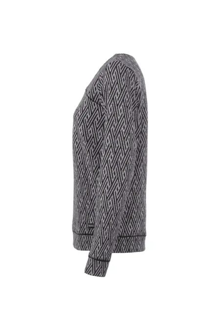 Feminin-legeres Sweatshirt mir grafischem Jacquard-Muster. Sowohl durch die neutrale Farbgestaltung, als auch durch das einzigartige Muster kann das Sweatshirt im Alltag, aber auch zu besonderen Anlässen getragen werden.