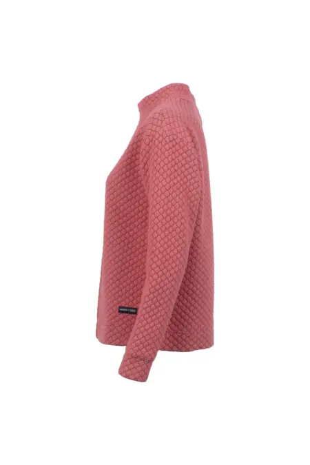 Feminines Jacquard-Sweatshirt mit zartem, grafischem Muster. Mit Stehkragen, überschnittener Schulter und mittlerer Ziernaht.
