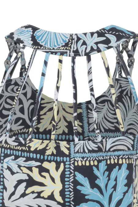 Top mit spannenden Riemchen-Details für einen femininen Look. Der Allover-Print macht es zum perfekten Begleiter für den Sommer.