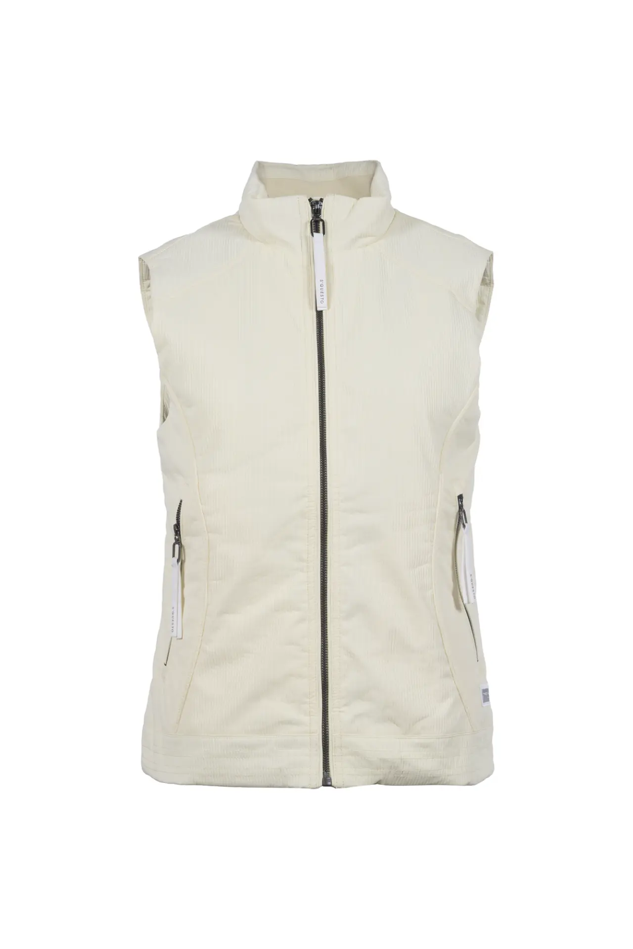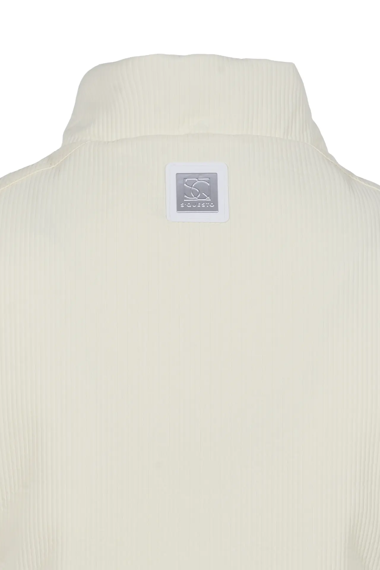 Leichte, ungesteppte Weste in pastelligen Farben. Sie überzeugt durch ihre dezente Streifenstruktur und weiße Zipper-Puller mit S’questo Print. Der Stehkragen und die Schnittführung sorgen für eine sportive Optik.